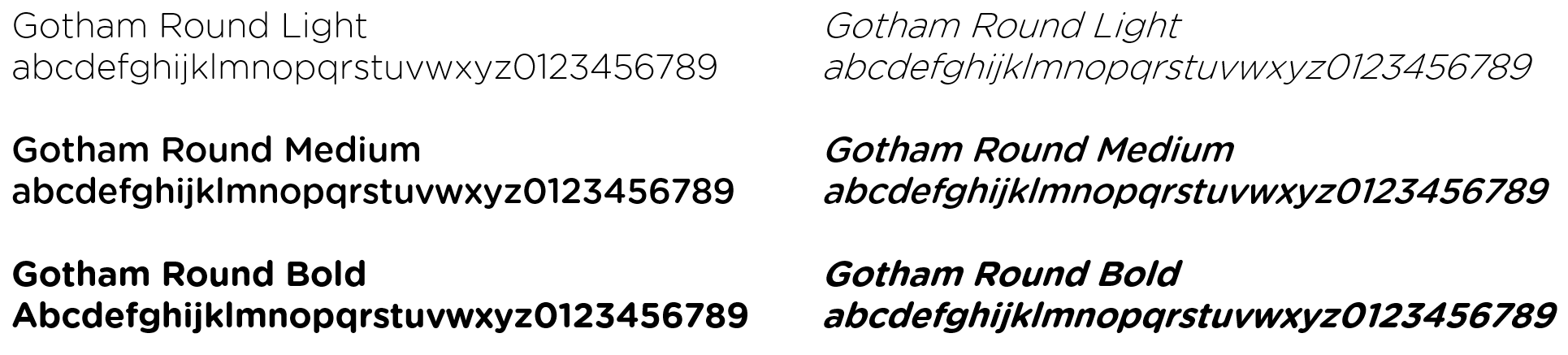 Gotham Round is the primary font used for BeagleBoard.org® and is available in the following weights and styles: